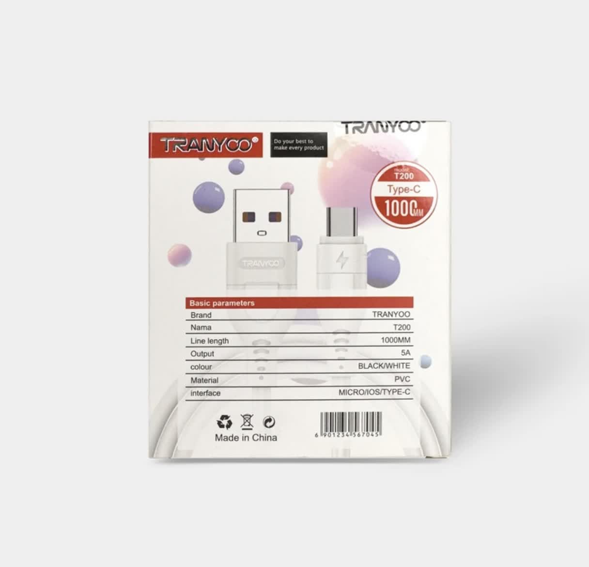 کابل شارژUSBبهTAYP-C مدل ترانیوT200